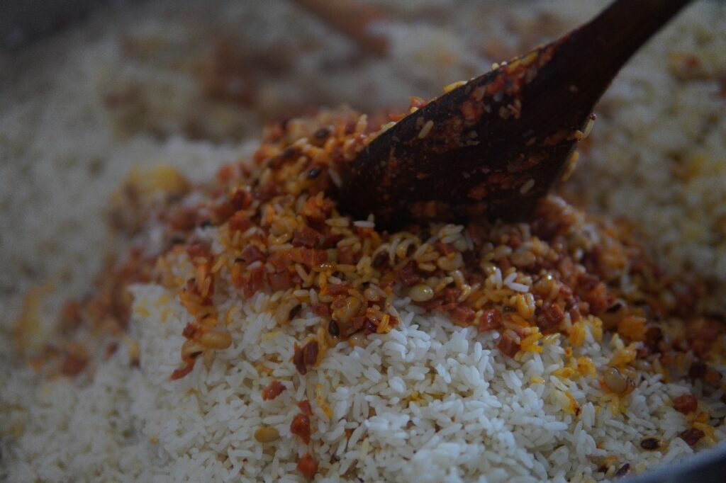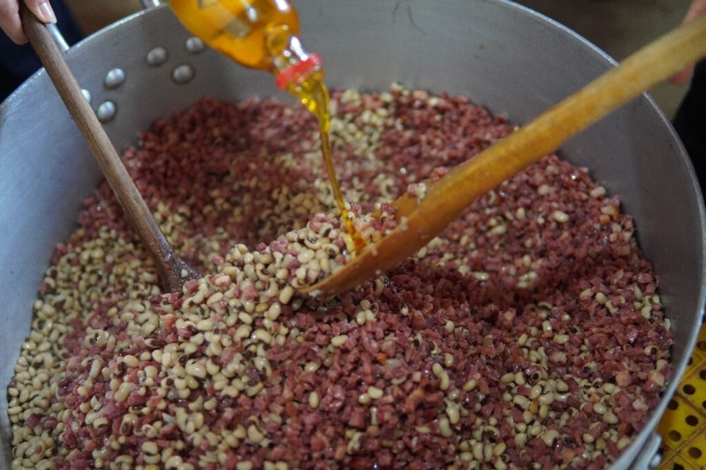 Entre sorrisos largos e “chamadas de atenção” bem-humoradas, Cícero mexia as grandes panelas do baião na cozinha da Okaracy. “Cozinhar é um ato revolucionário”, dizia. E não falava apenas de preparar alimento, mas de escolher qual comida fazer, de que memória ela vinha, de como essa comida alimentava o corpo e a história coletiva. O baião, prato popular nascido no sertão nordestino, não era ali apenas feijão, arroz, carnes (tinha, também, uma opção vegana) cheiro-verde, manteiga de garrafa e tempero: era resistência cultural, memória de um povo inteiro servida em prato fundo. “O baião bom é o possível de ser feito”, explicava, lembrando que a cozinha também ensina a reinventar a vida com o que se tem, com criatividade e dignidade.