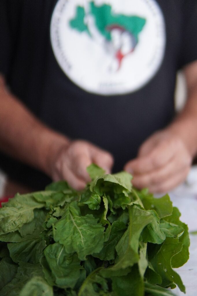 As palavras de Dona Íris, assentada da Comuna há 23 anos e integrante da recém-formada Associação de Produtores Agrícolas Irmã Alberta (APAIA), carregam não apenas memória, mas futuro. Em sua roça brotam verduras e legumes, um pomar de acerola, pés de uva e pitaya. O que ela descreve não é só produção, mas a reconstrução de um modo de viver em que a terra volta a respirar, as águas voltam a correr e as pessoas podem se alimentar com dignidade.