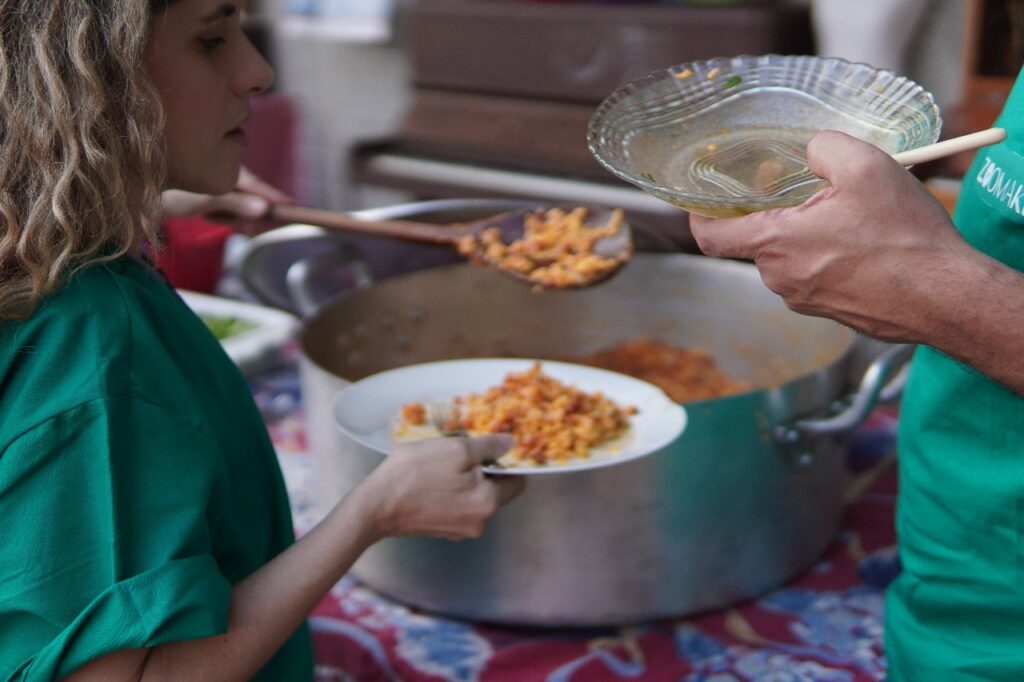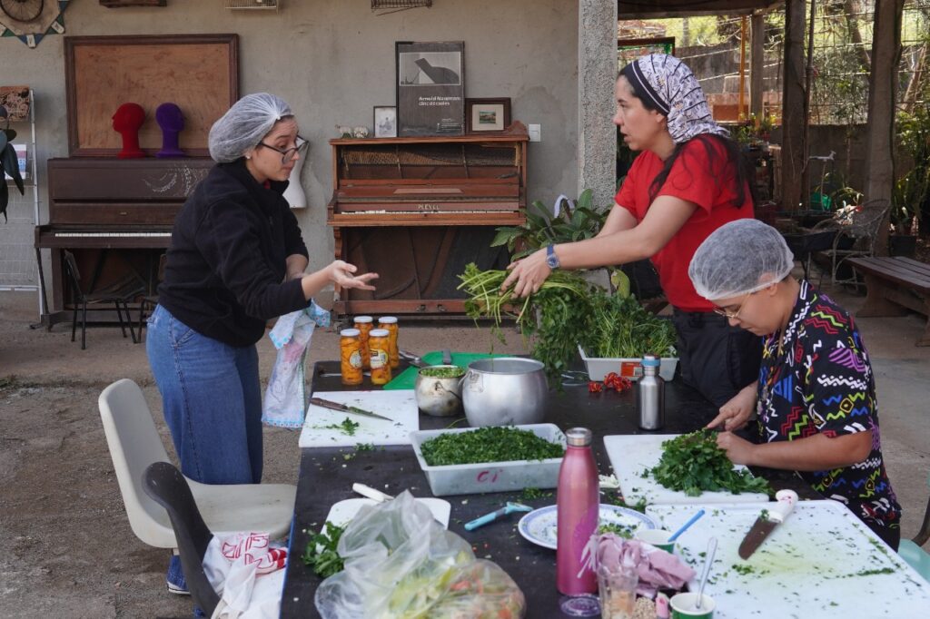 A experiência da comensalidade coletiva — sentar-se junto, partilhar, aprender na prática que o alimento é também vínculo — se misturava com outras trocas internacionais. Entre os presentes estava a atriz e diretora polonesa Ludmila Ryba, que foi parte da Companhia Cricot 2 ao lado de Tadeusz Kantor. Há quinze anos em contatos com o Brasil e, nos últimos dez, com a Companhia Antropofágica, Ludmila ressaltava o afeto que o teatro é capaz de despertar.