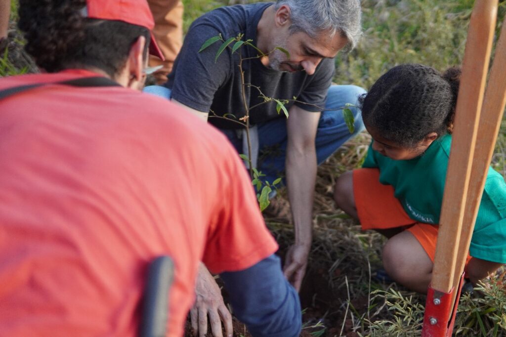 Naquele pôr do sol, as mãos das crianças mergulham na terra, os olhos se enchem de brilho ao conhecer o plantio. A arte se mistura ao chão fértil, ao futuro que não é promessa distante, mas prática presente. O gesto de plantar é afeto coletivo, é militância viva. O percurso termina, mas também começa: com raízes no solo, com vínculos reencantados entre gente, terra e luta. É a lembrança de que, como dizem os Sem Terra, cada muda é também um sonho de justiça social.