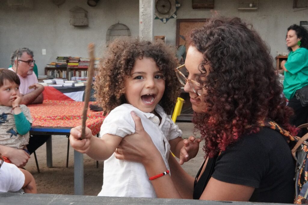 E de fato, o afeto estava em todo lugar: no baião mexido por mãos calejadas da luta, nas barraquinhas com verduras e produtos orgânicos, na barraca de livros — única da região, uma trincheira contra o ostracismo cultural —, nas músicas que atravessavam o ar, e nas crianças que corriam e brincavam em cada canto possível do território. Era um afeto ecoado pelo teatro que só tem cenário, realidade tangível e intangível, graças à luta dos assentados.