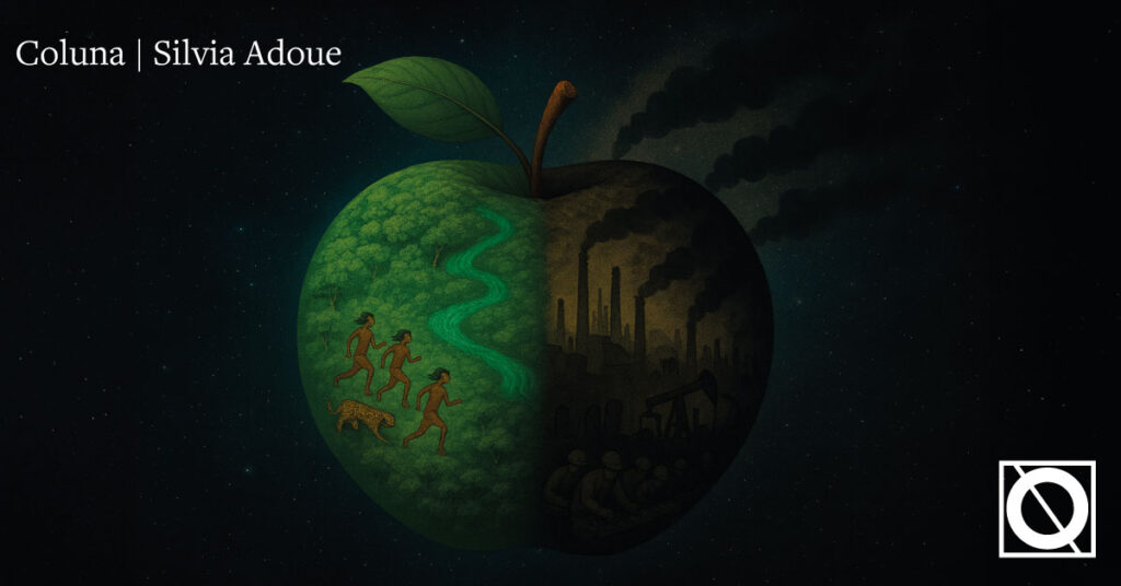 Os indivíduos humanos passamos os primeiros anos nos afastando do seio materno… e o resto da vida tentando retornar a ele de uma maneira ou de outra. Assim, o desejo de nos reencontrar com a natureza (e com nossa própria natureza humana) pode se revestir do romantismo com que costumamos idealizar a infância da humanidade5. Sonhamos com voltar a um tempo em que, como dizem os Wajãpi, havia uma linguagem compartilhada com os outros seres6, com a qual era fácil praticar a sofisticada diplomacia do equilíbrio e a reciprocidade. Em várias culturas existe o mito de um episódio de confusão de línguas e de impossibilidade de comunicação, e em todas elas aparece a arrogância humana como causa do desastre. Um desastre contínuo que se intensifica e acelera, com risco de nos conduzir à extinção. Já Walter Benjamin nos apresentou a revolução como o freio de mão que os passageiros deste trem desgovernado que é a civilização acionam para evitar o abismo7. Propõe deter um movimento… e depois ver o que fazer. Ailton Krenak é ainda mais radical quando nos sugere que o futuro é ancestral8.